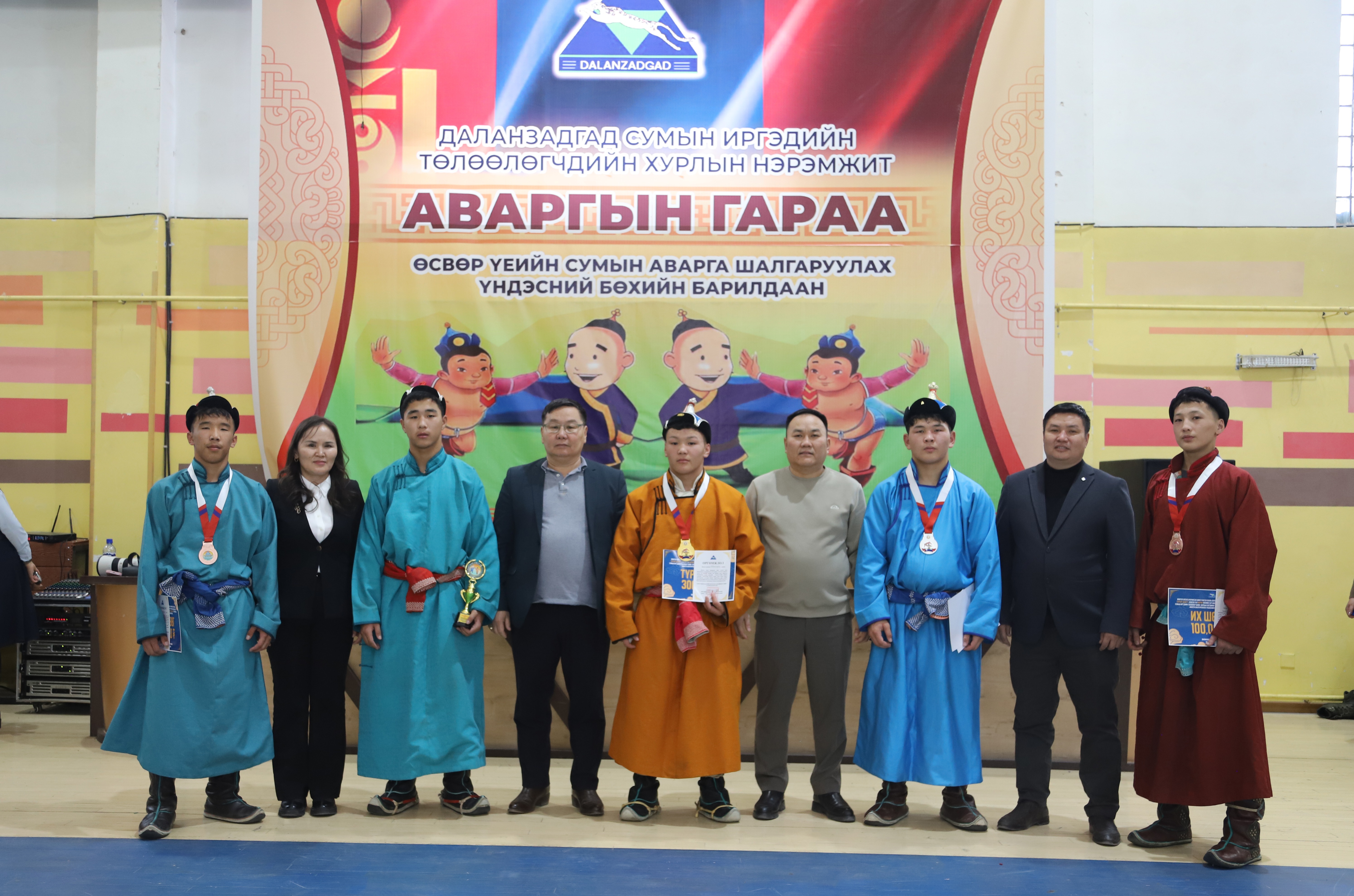 Монгол улсад Ардчилсан Үндсэн хууль батлагдсаны 34 жилийн ой, XVII жарны “СҮРЭЭР ДАРАГЧ” хэмээх гал МОРИН жилийн сар шинийн баярт зориулсан Даланзадгад сумын иргэдийн Төлөөлөгчдийн Хурлын нэрэмжит “АВАРГЫН ГАРАА” өсвөр үеийн сумын аварга шалгаруулах үндэсний бөхийн барилдаан 2026 оны 2-р сарын 4-ний өдөр 5 насны ангиллаар зохион байгуулагдлаа.